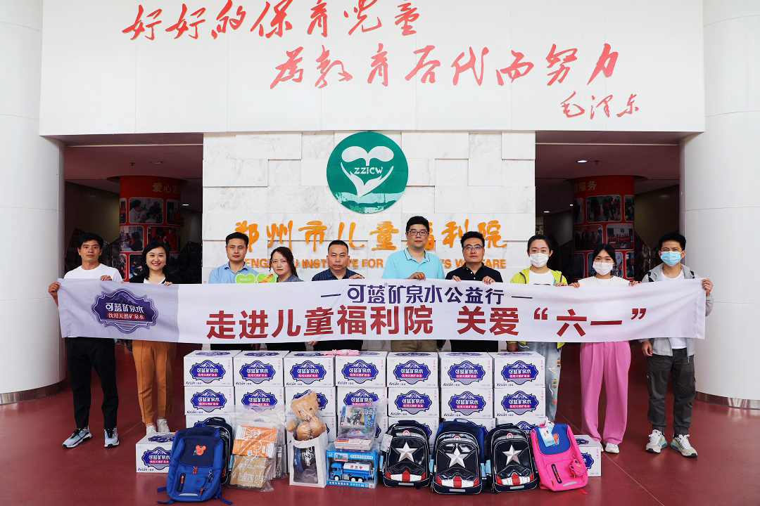 可蓝矿泉水走进福利院青岛可蓝矿泉水有限公司携手人民日报数字传播•河南、悟空徒步戈壁团队等社会团体前往郑州市儿童福利院开展“迎六一,献爱心”志愿服务活动,用饱满的热情、用心的礼物,让孩子们感受到来自社会各界的关爱。